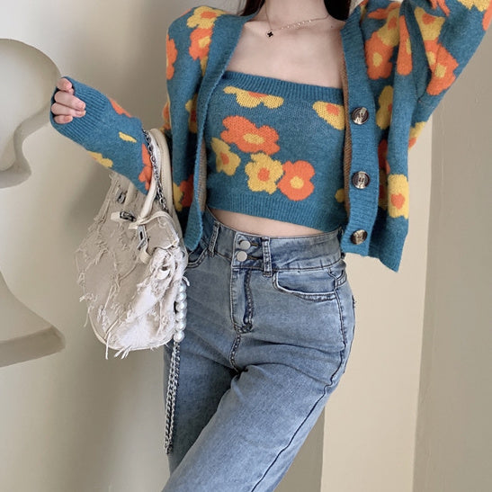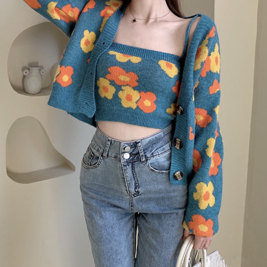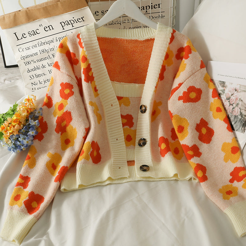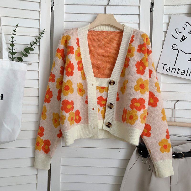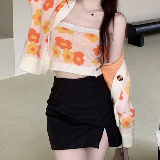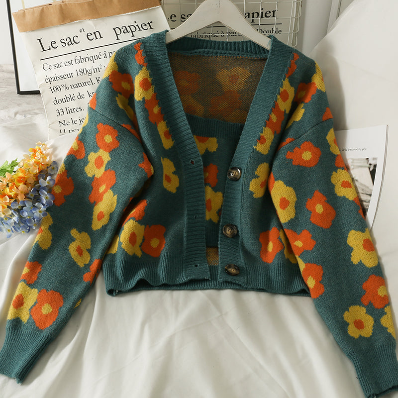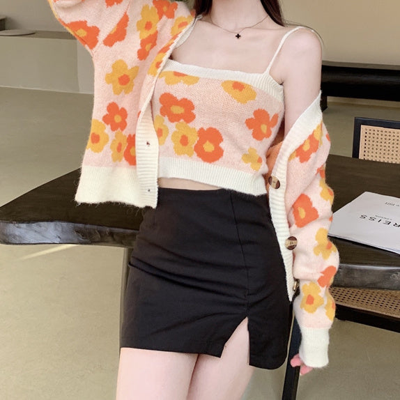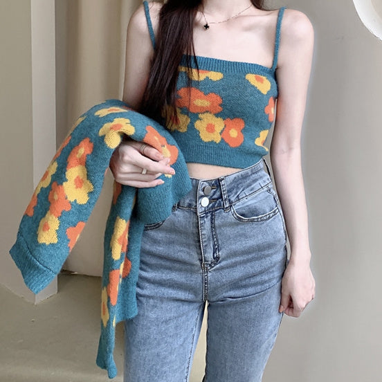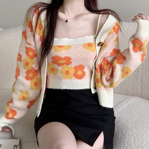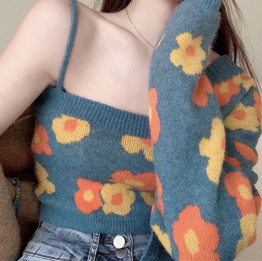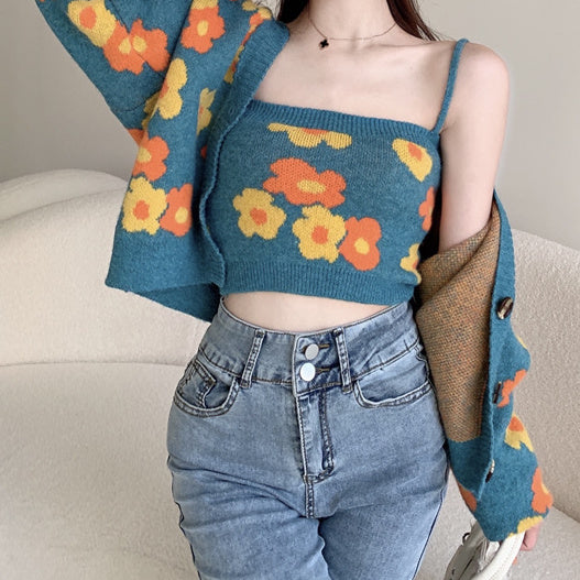 Flower Pop Cami & Cardigan Set (2 Colors)