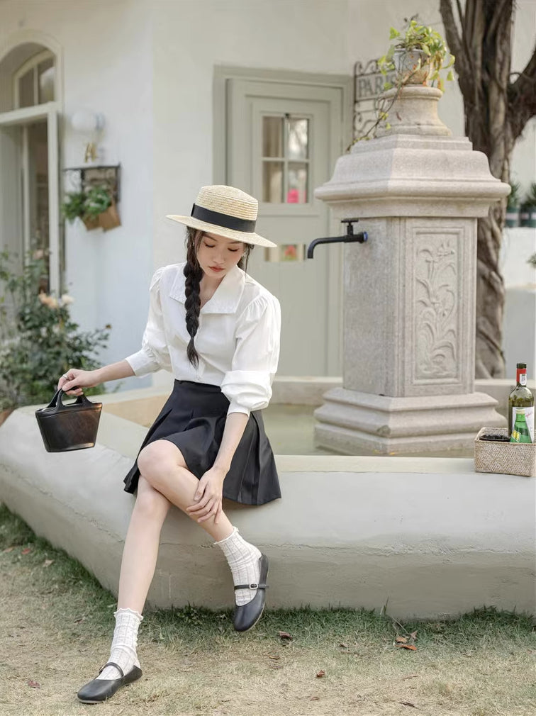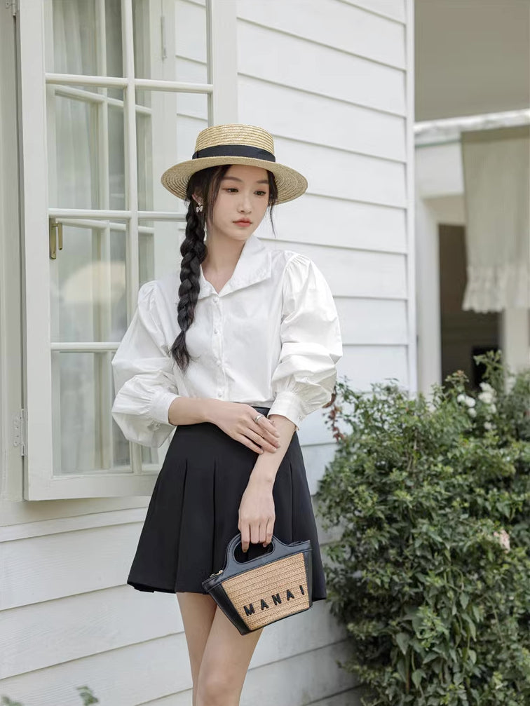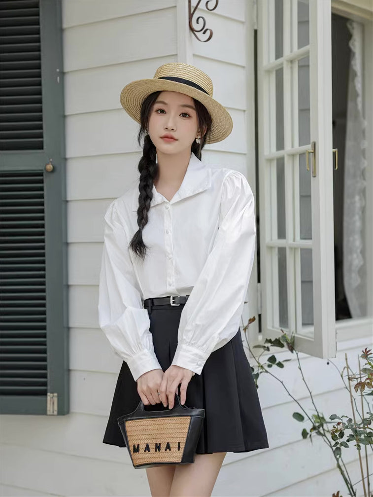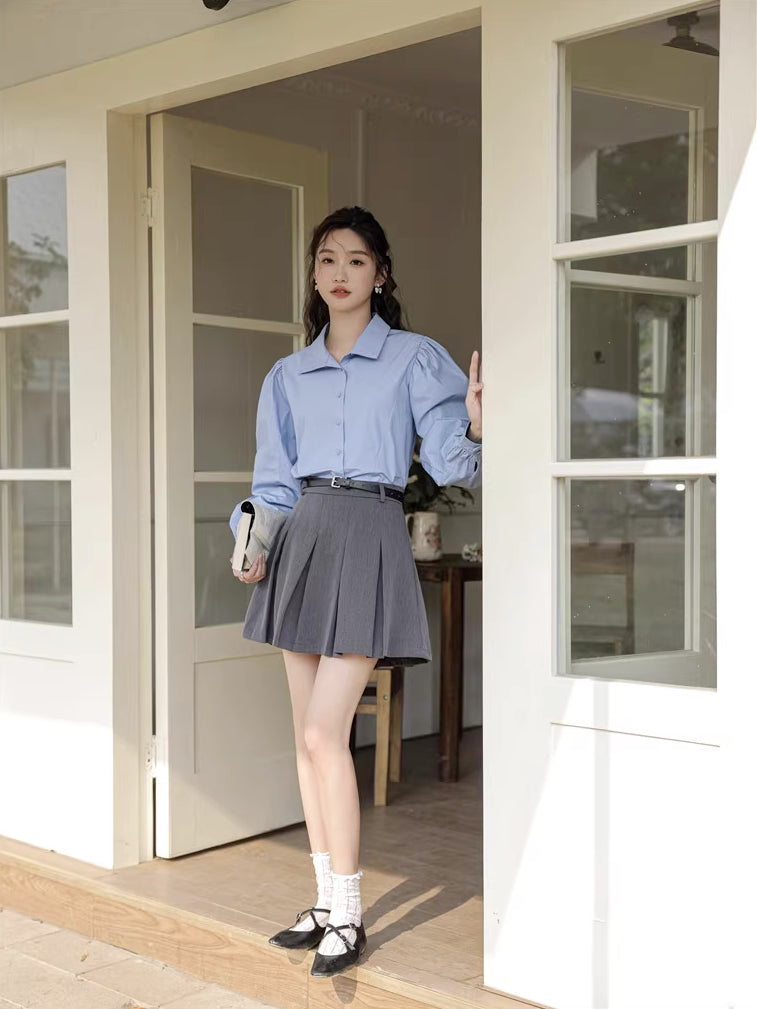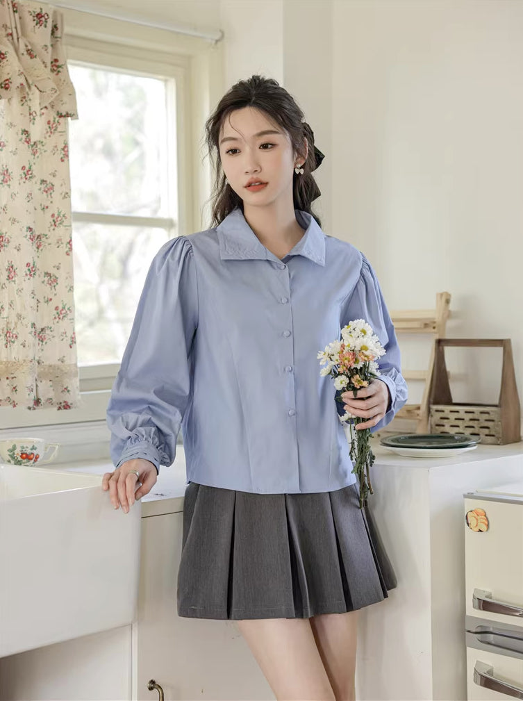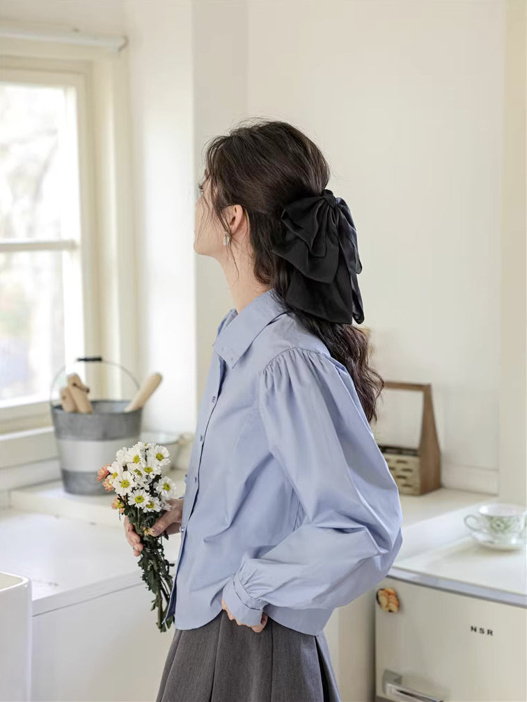 Basic Long Puff Sleeve Blouse (2 Colors)
