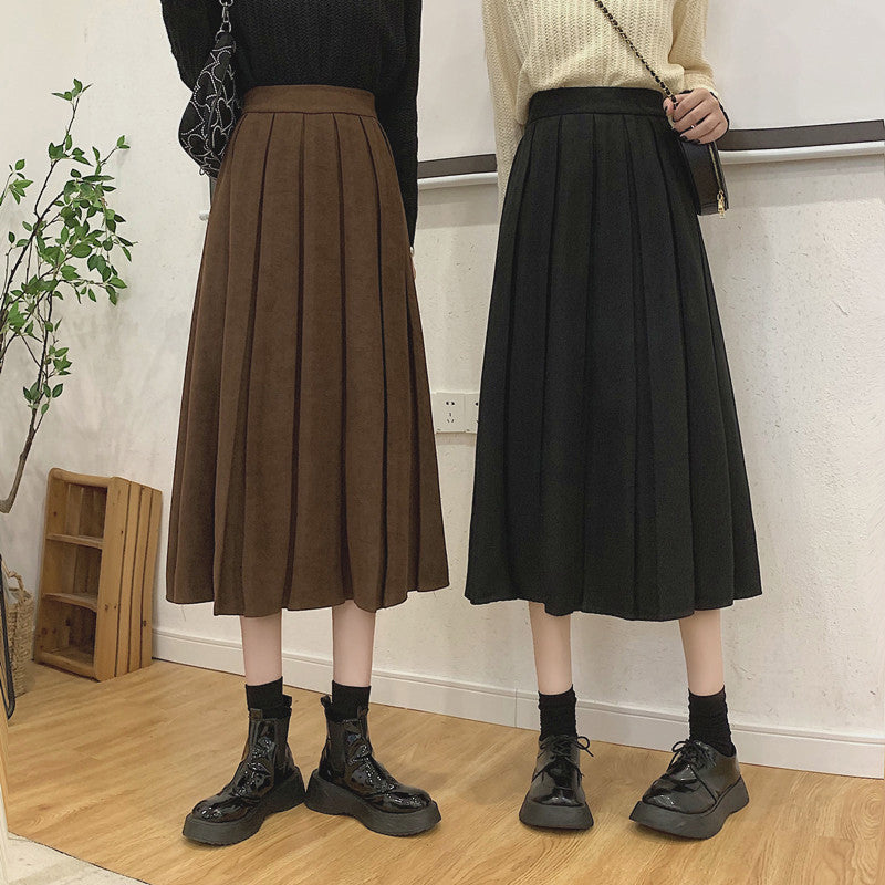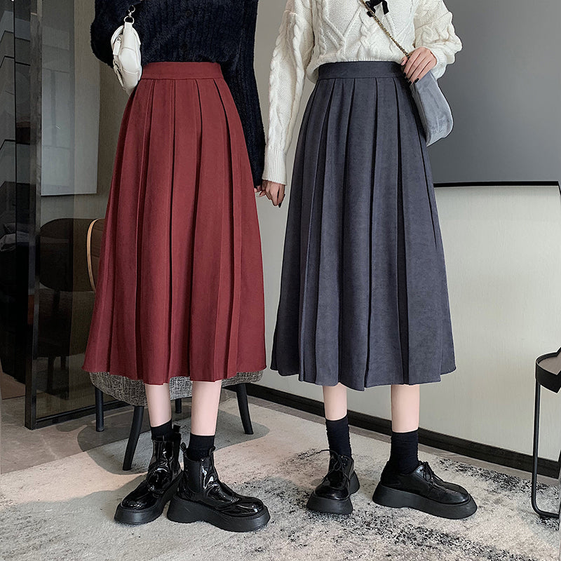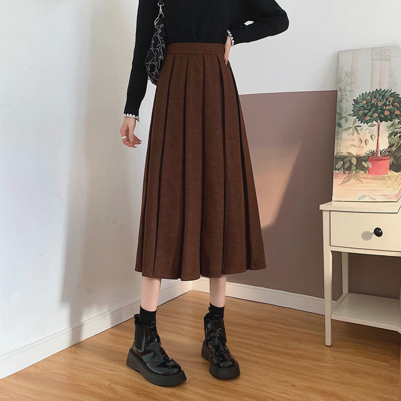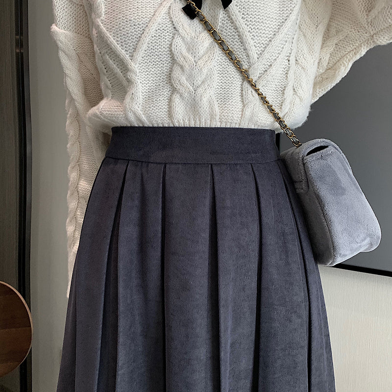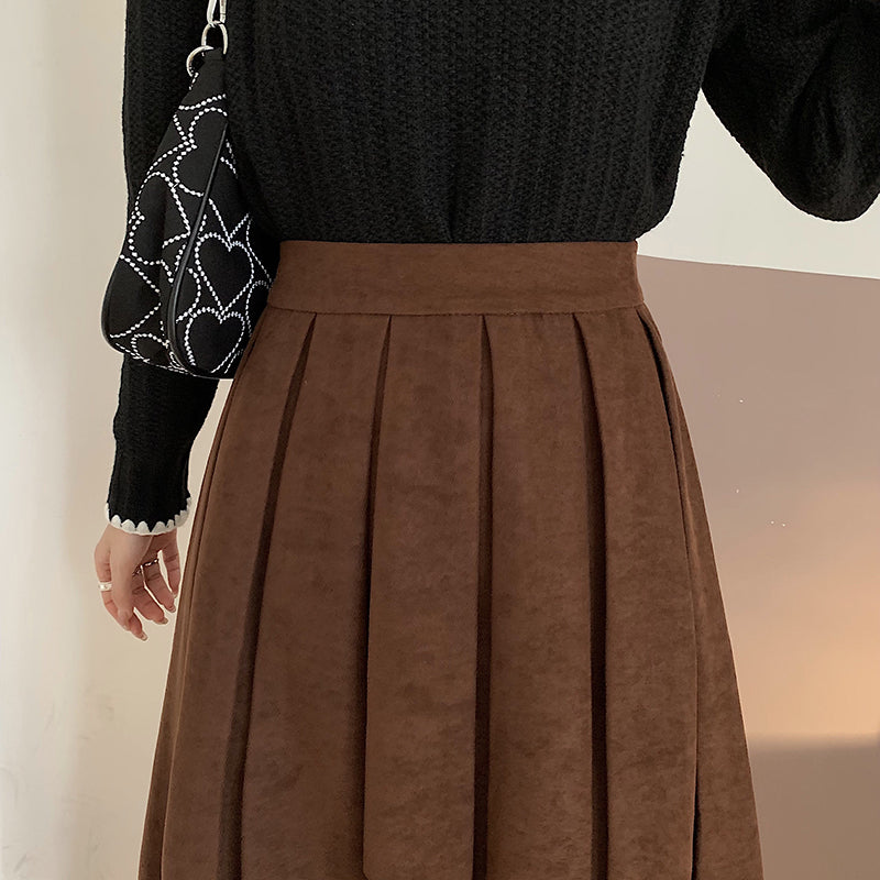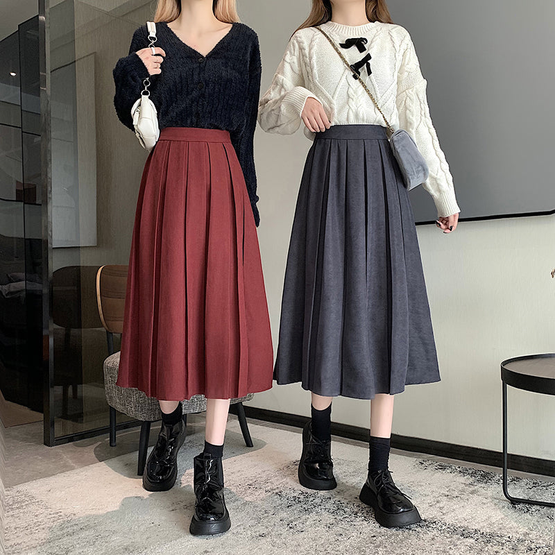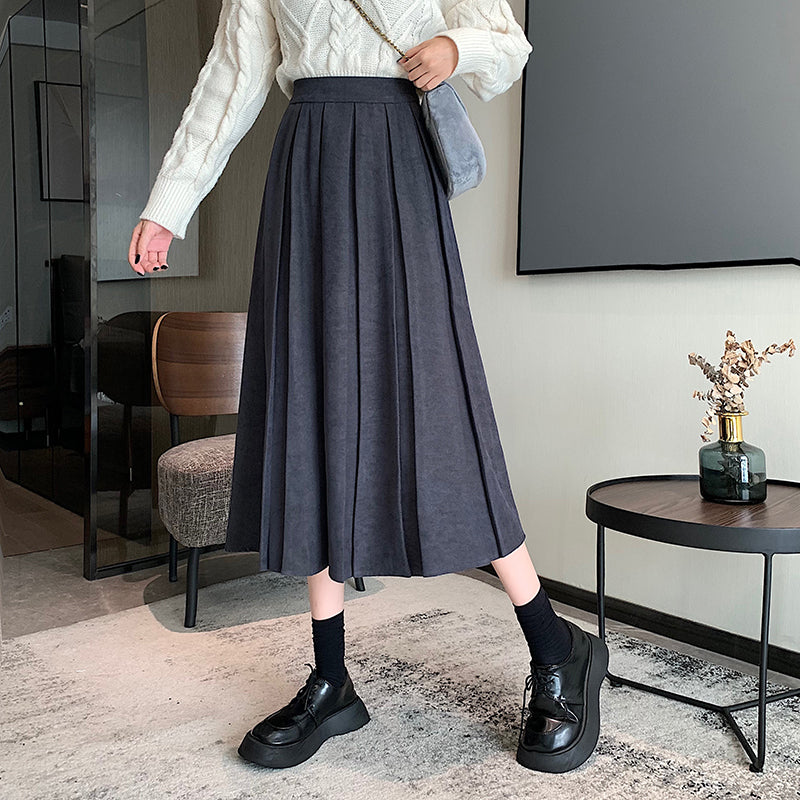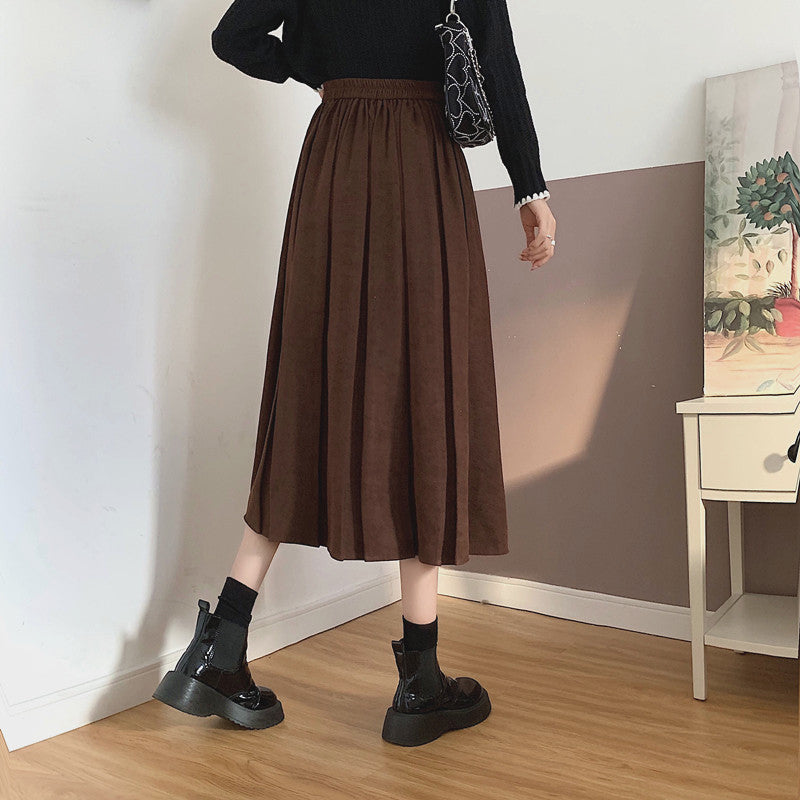 Corduroy Suede Pleated Midi Skirt (6 Colors)