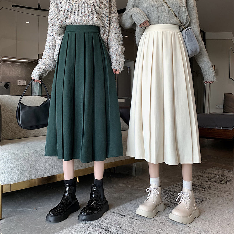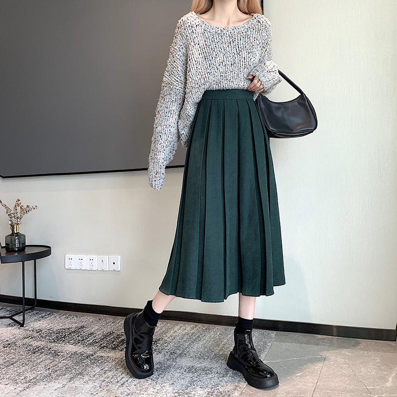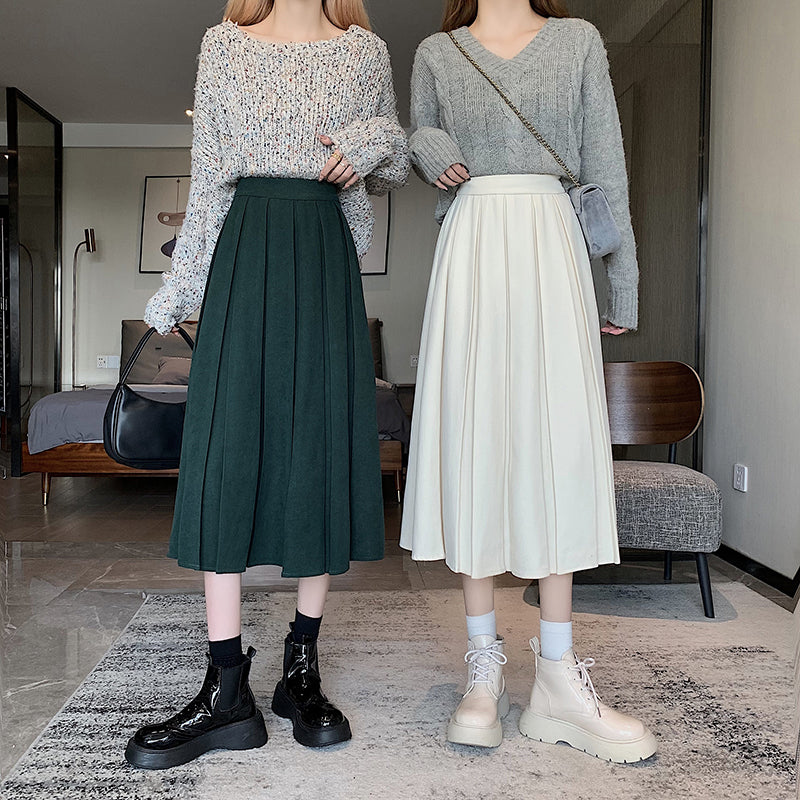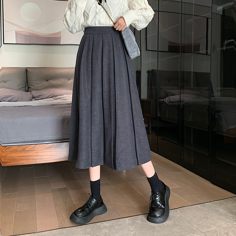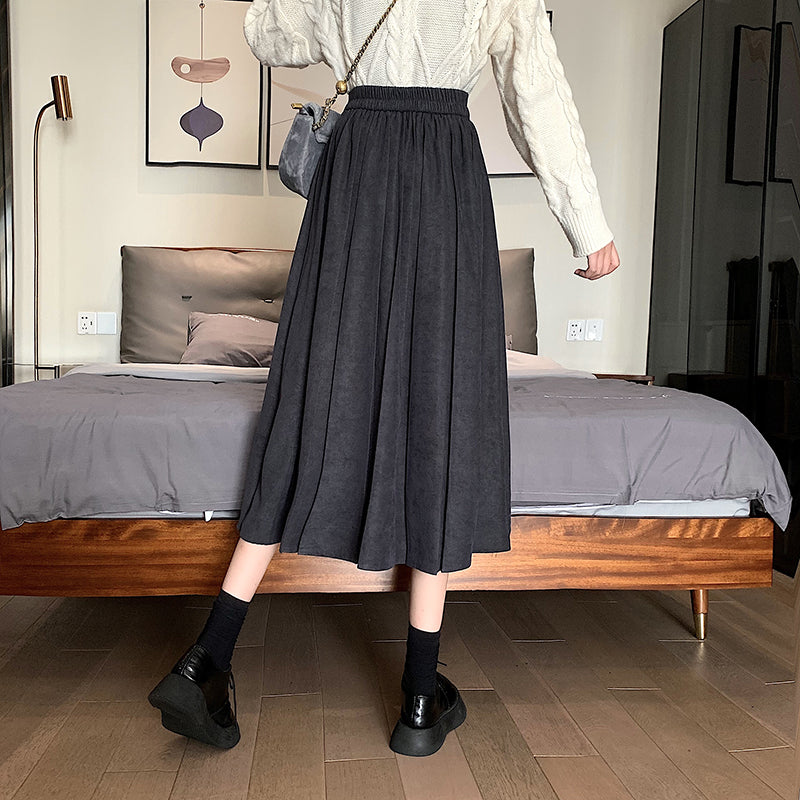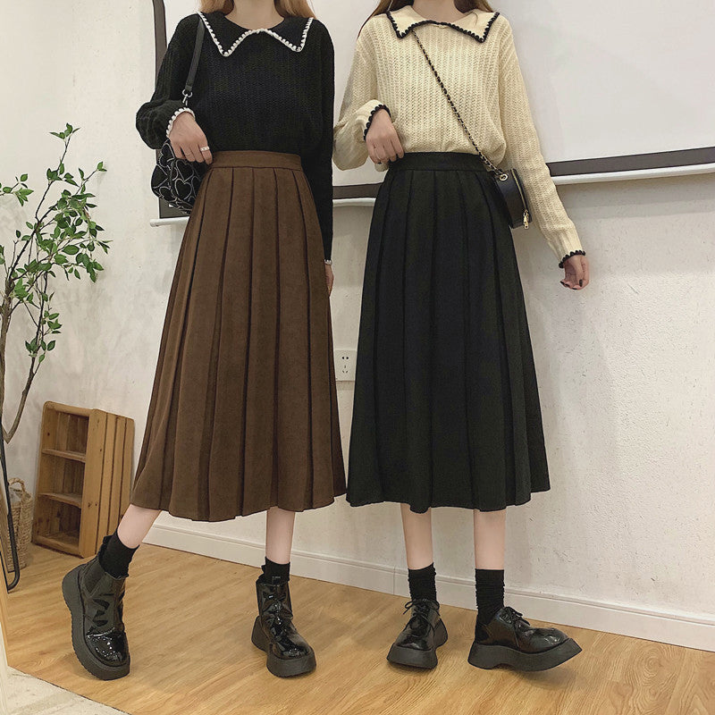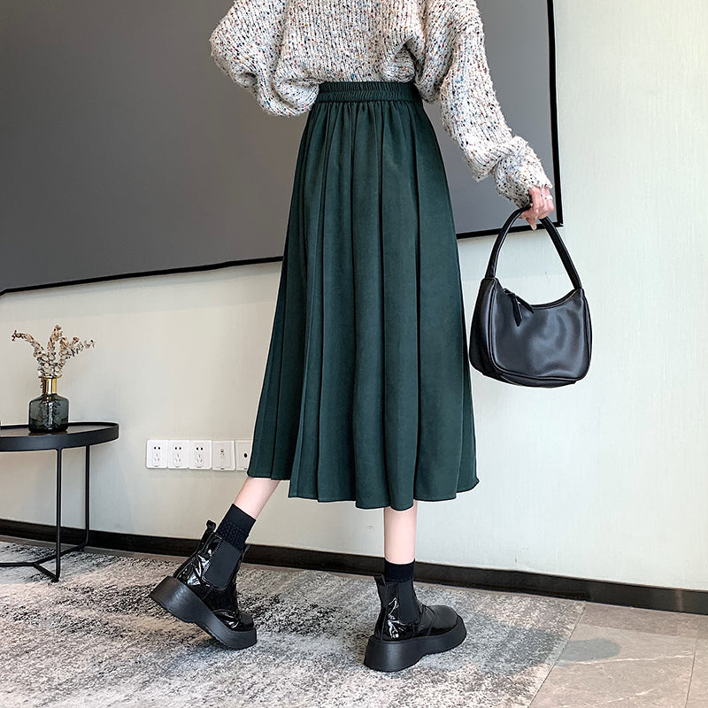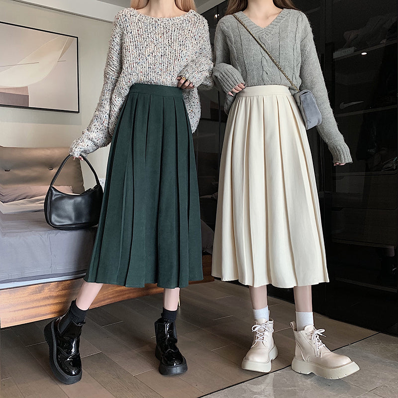 Corduroy Suede Pleated Midi Skirt (6 Colors)