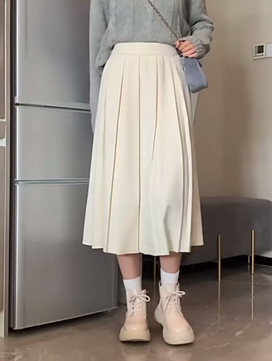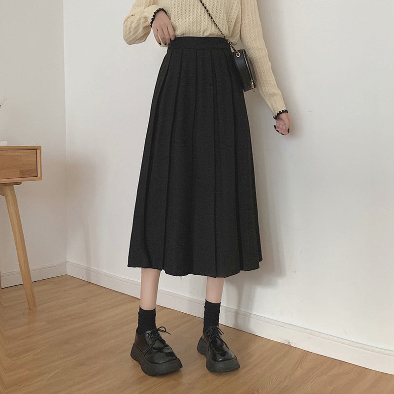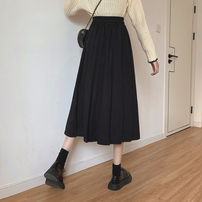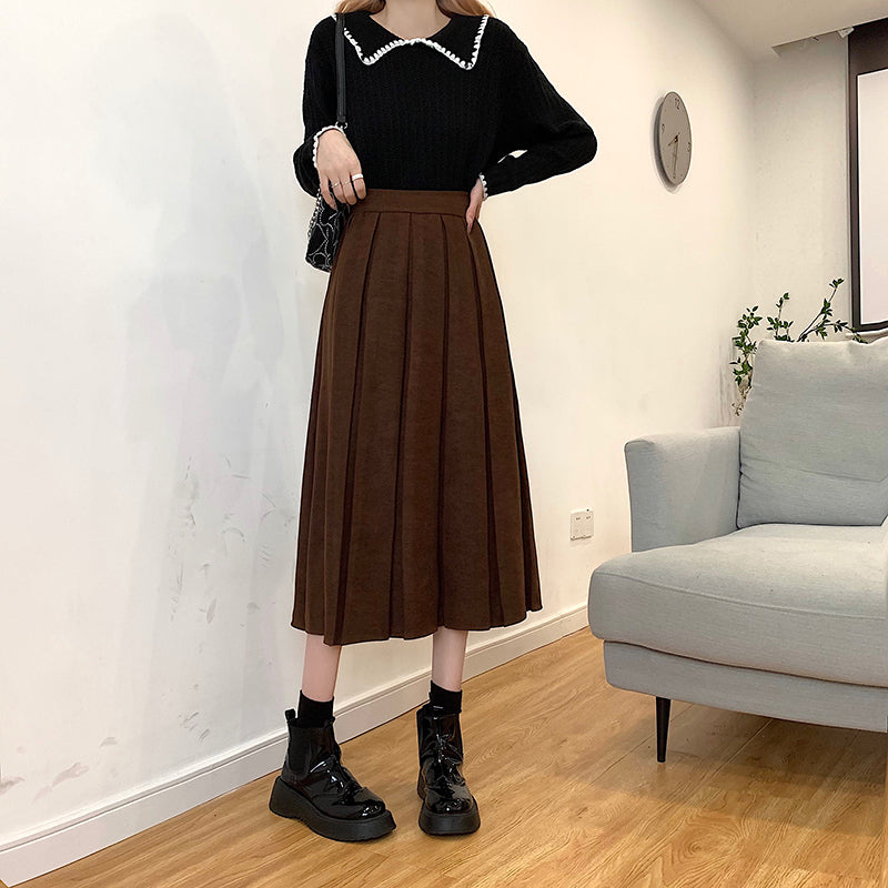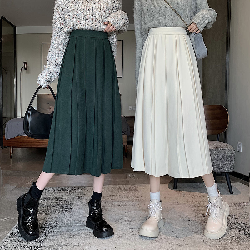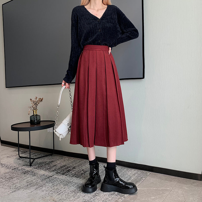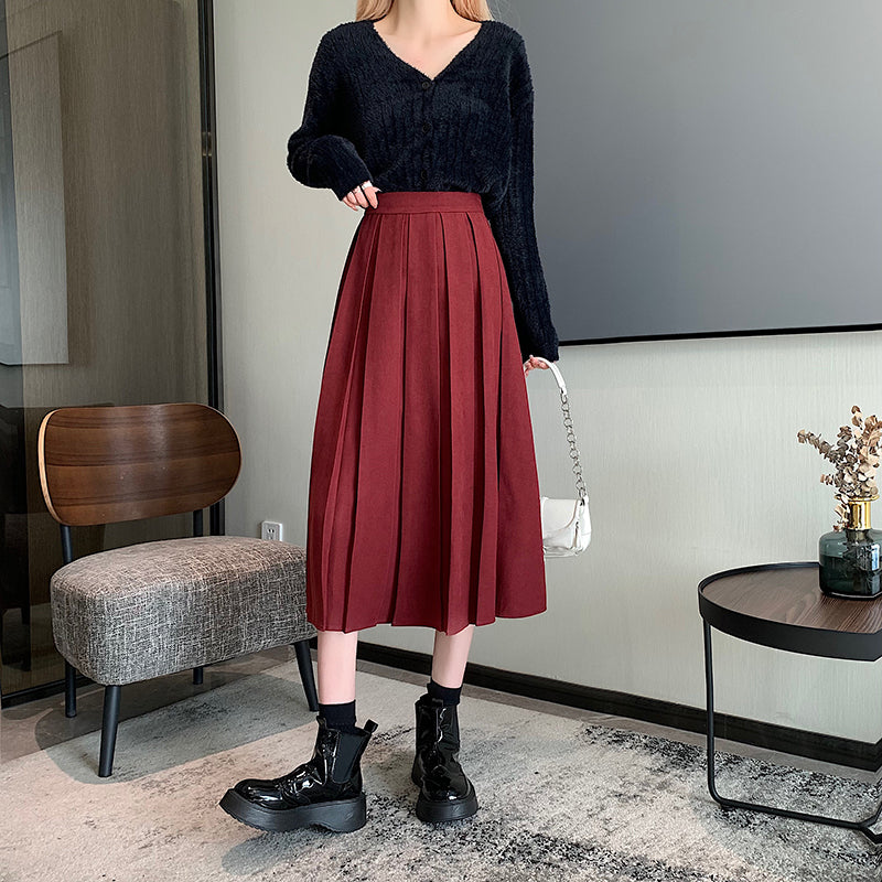 Corduroy Suede Pleated Midi Skirt (6 Colors)