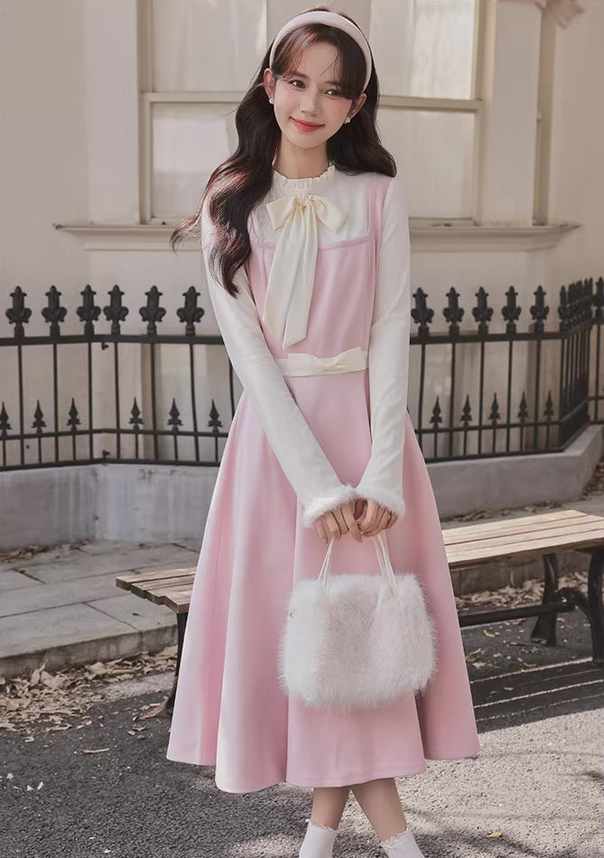 Cotton Candy Capelet & Midi Dress Set (Pink/White)