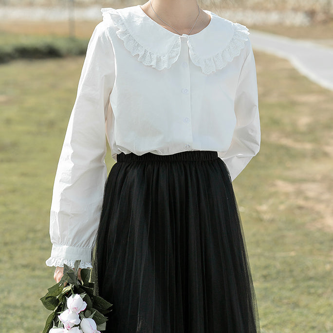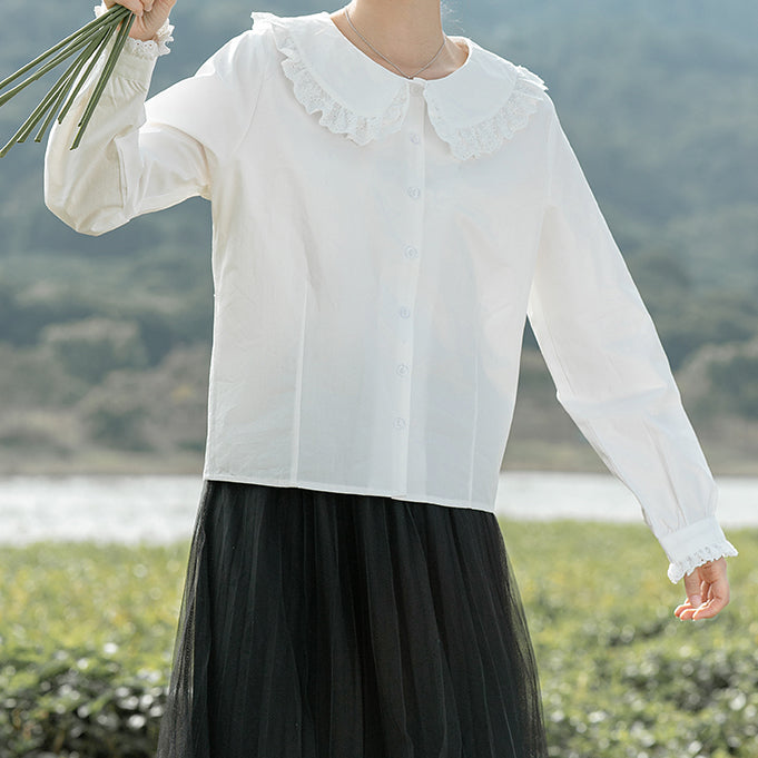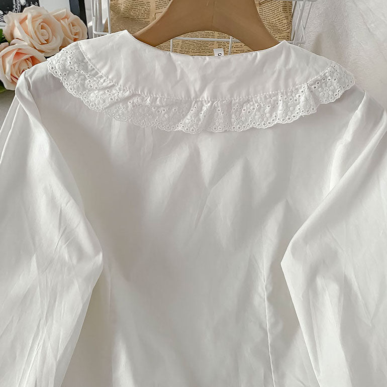 Eyelet Peter Pan Collar Button Up Shirt (White)