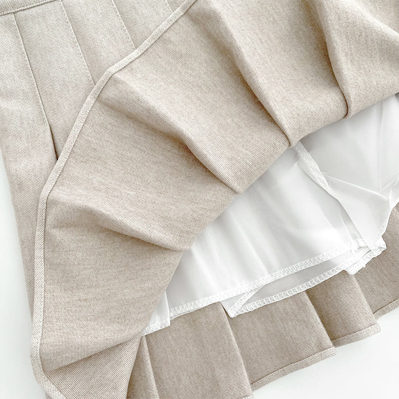 Classic tennis skirt in a neutral toned palette with permanent pleats, concealed side zipper and lined with safety shorts.