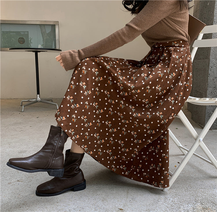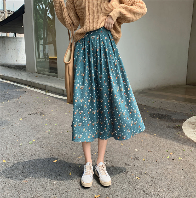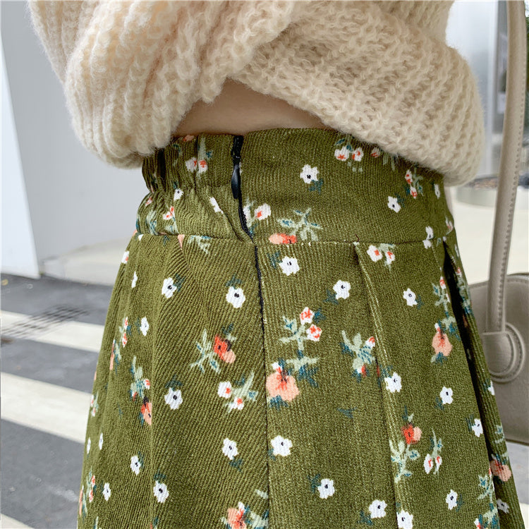 Raining Flowers Corduroy Midi Skirt (3 Colors)