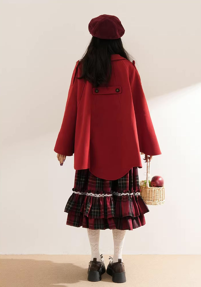 Red Riding Hood Plaid Midi Dress & Capelet (Red)